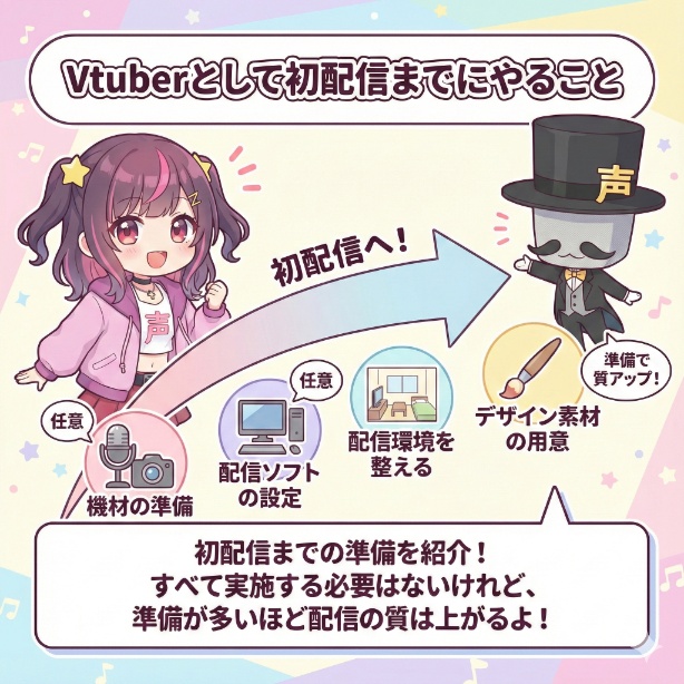 これからVtuber活動を始めようと考えている人は、初配信を行うまでにシッカリと準備をしておきましょう。