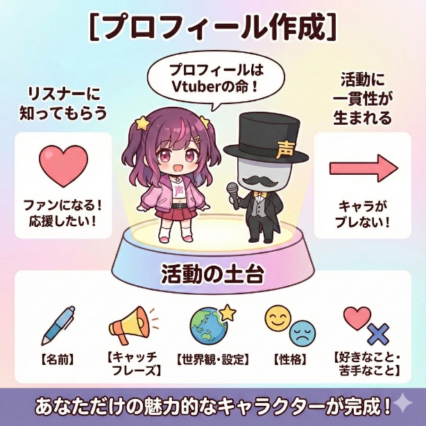その理由は、毎日数多くの新人がデビューするVtuber業界において、あなたの存在を視聴者に見つけてもらい、記憶に残してもらうための土台作りが不可欠だからです。