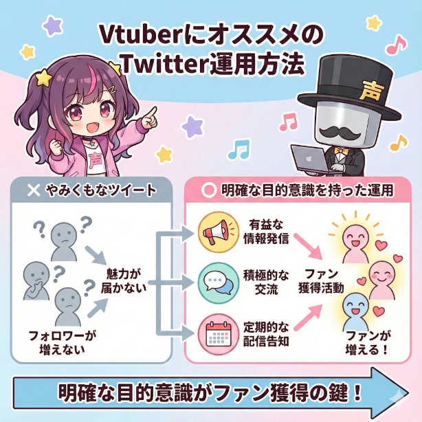 VtuberのTwitter運用における真の目的は、単なるフォロワー数を増やすことではありません。あなたの活動を心から応援し、配信に足を運んでくれる「本物のファン」を一人でも多く獲得することです。