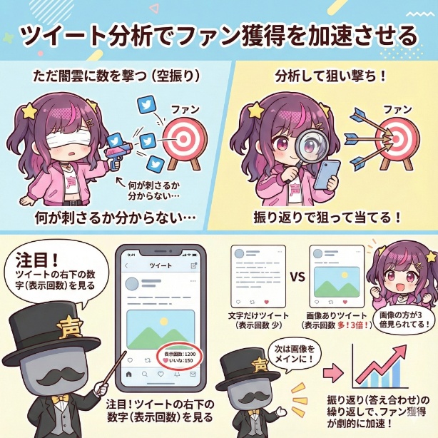 なぜなら、ただ闇雲に数を撃つだけでは、何がファンに刺さっているのか分からず、いつまで経ってもフォロワーが増えない「空振り」を繰り返す恐れがあるからです。