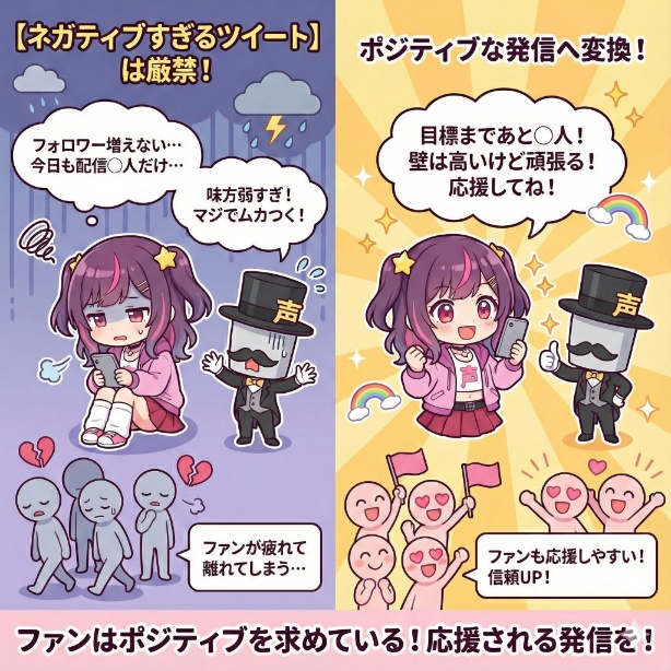 VtuberとしてのTwitter運用とは、あなた自身の感情のはけ口ではなく、ファンとの関係を築くためのコミュニケーションの場なのです。ポジティブな発信を心がけ、応援されるに値する存在であり続けてください。