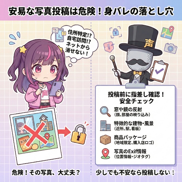Vtuber活動における個人情報の安全を確保するため、安易に現実の写真を投稿することは、極めて高いリスクを伴う行為であると強く認識してください。