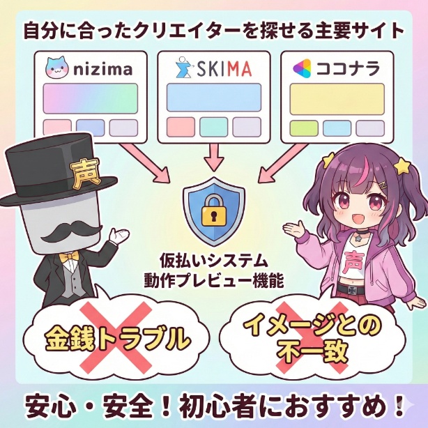 なぜなら、これらのプラットフォームには「仮払いシステム」や「動作プレビュー機能」が備わっており、初心者が最も恐れる「金銭トラブル」や「イメージとの不一致」を未然に防げるからです。