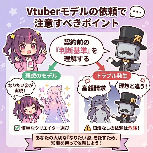 Vtuberモデルの制作依頼で後悔しないためには、契約前に知っておくべき「判断基準」を理解しておくことが何よりも重要です。