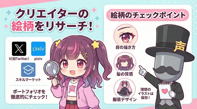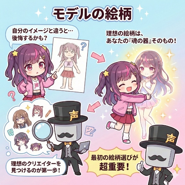Vtuberモデルの依頼で最も重要な第一歩は、あなたの「なりたい姿」を寸分違わず形にしてくれる、理想の絵柄を持つクリエイターを見つけ出すことです。