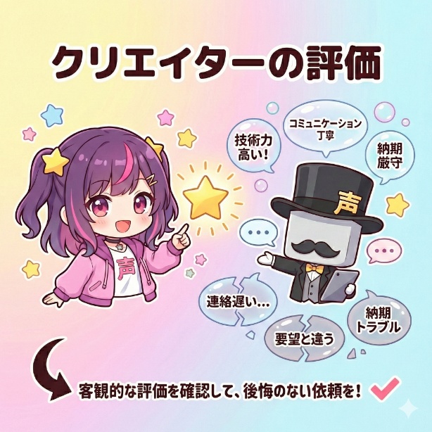 Vtuberモデルの制作依頼をする前に、必ずクリエイターの評価を確認してください。