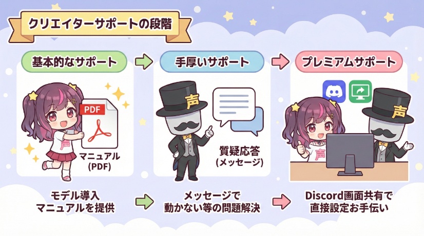 クリエイターのサポート範囲には、主に以下のような段階があります。