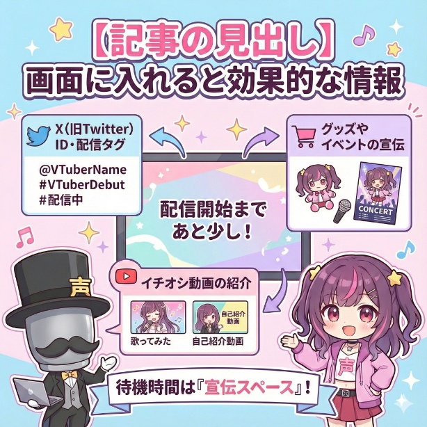 なぜなら、待機時間は視聴者が画面をじっくり見てくれるタイミングであり、あなたの活動を知ってもらうための「宣伝スペース」として最大限に活用できるからです。