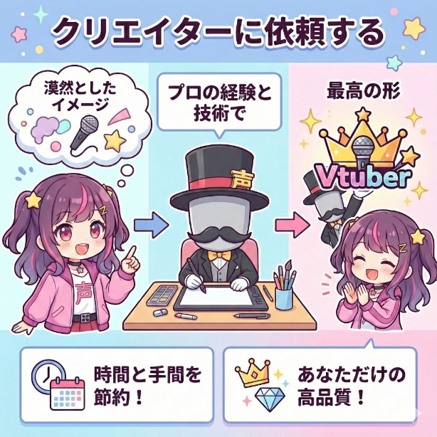 このように、クリエイターへの依頼は、費用という初期投資で「時間」と「クオリティ」を確実に手に入れる賢い選択肢です。