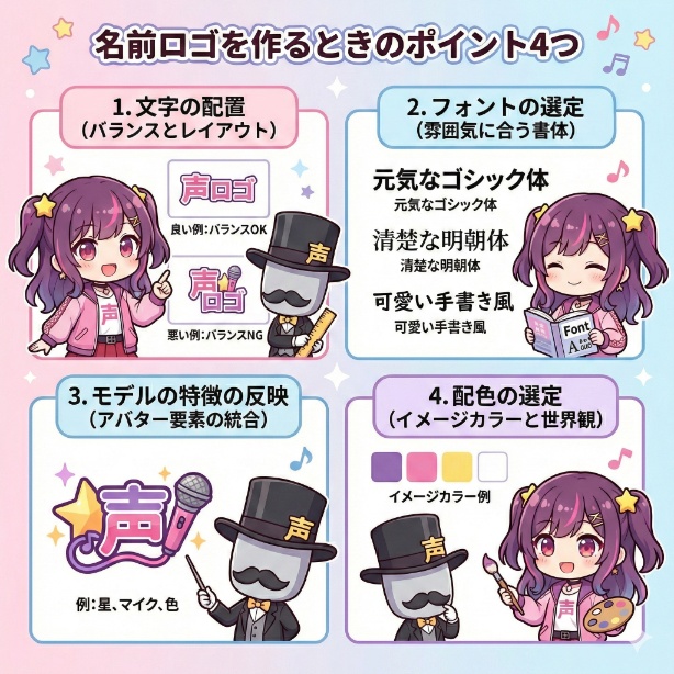 このように、アバターの要素をロゴに少しだけ「おすそ分け」してあげる感覚で考えてみてください。