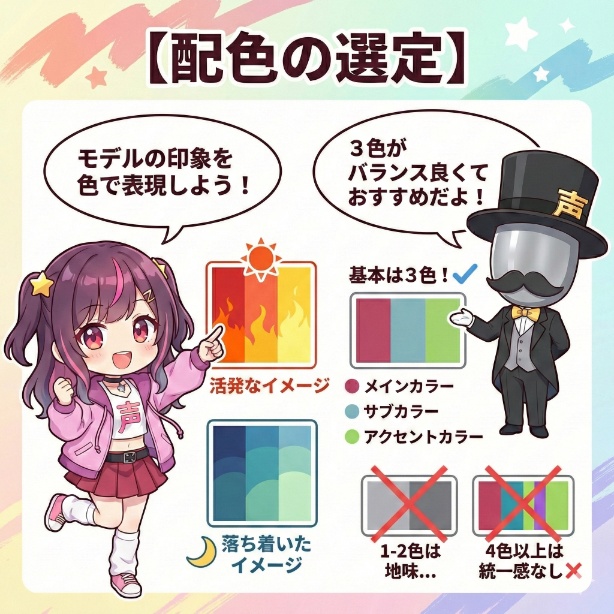 アバターの髪型や衣装、モチーフなどをどうロゴに組み込むか - 配色の選定