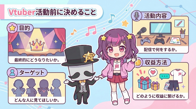 Vtuberになるための第一歩は、「あなたがVtuberとして何を一番重視したいか」という活動の軸を決めることです。