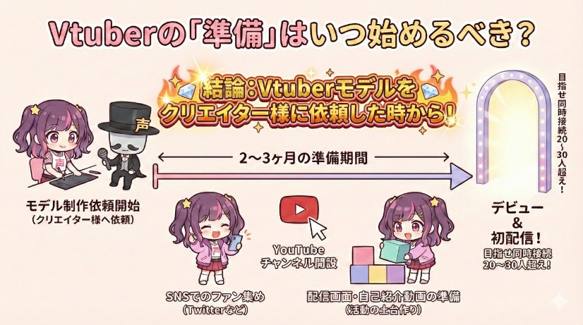 そして、最も重要な「準備期間」(モデル制作の待ち時間など)を有効活用し、SNSでのファン集めや素材制作でライバルと差をつけること。 この戦略的なステップを踏めば、今からでも全く遅くありません。