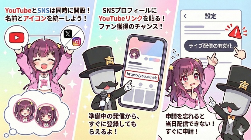 各項目については後ほど詳しく説明しますが、Vtuber活動で生活できるくらい本気で収益を得たいなら、いきなりデビューするのはNGです。