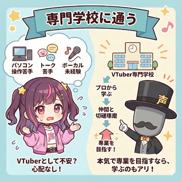 なぜなら、VTuberになるには多くの準備が必要ですが、その道のりを手助けしてくれるサービスや学校が存在するからです。プロの指導を受ければ、よりスムーズかつ確実に、夢の実現に近づくことができます。
