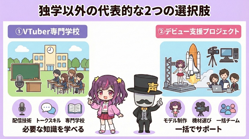 ここでは、独学以外の代表的な2つの選択肢を紹介します。
