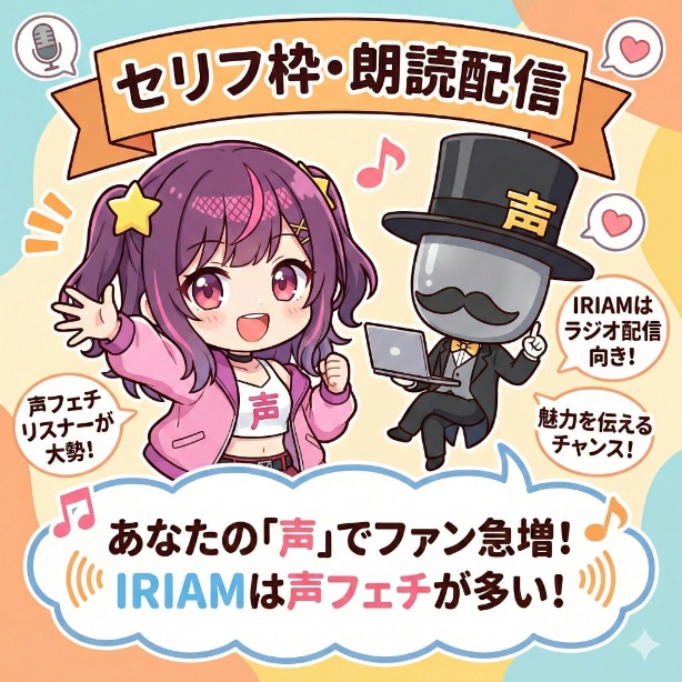 もしあなたが自分の「声」を武器にファンを増やしたいと考えているなら、「セリフ枠」や「朗読配信」に挑戦するのが最も効果的でおすすめです。