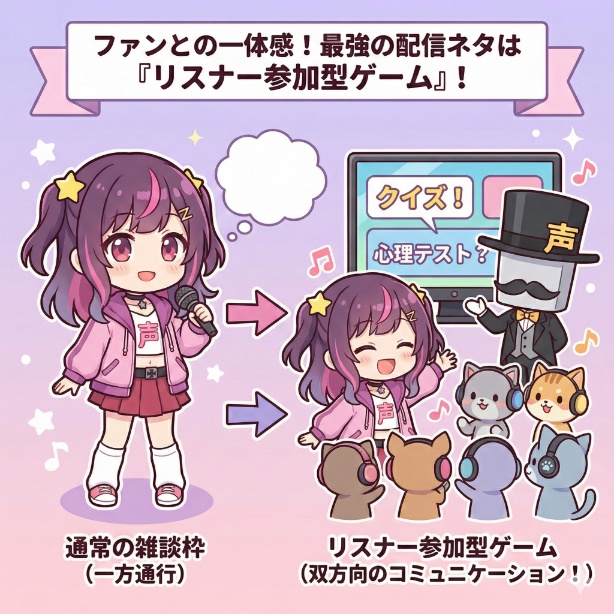 リスナーは単なる視聴者ではなく、あなたを支える「仲間」へと変わります。この共闘体験が、他の配信では得られない熱狂と忠誠心を生み出し、「このライバーさんを本気で応援したい」という気持ちに繋がるのですね。