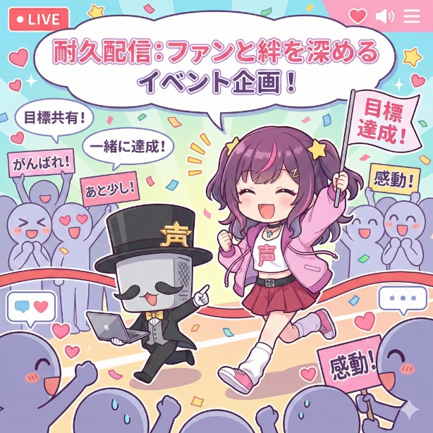 ファンとの一体感を劇的に高めたいなら、「耐久配信」は最高のイベント企画です。明確な目標をリスナーと共有し、一緒に達成することで、忘れられない思い出と強い絆を築けます。