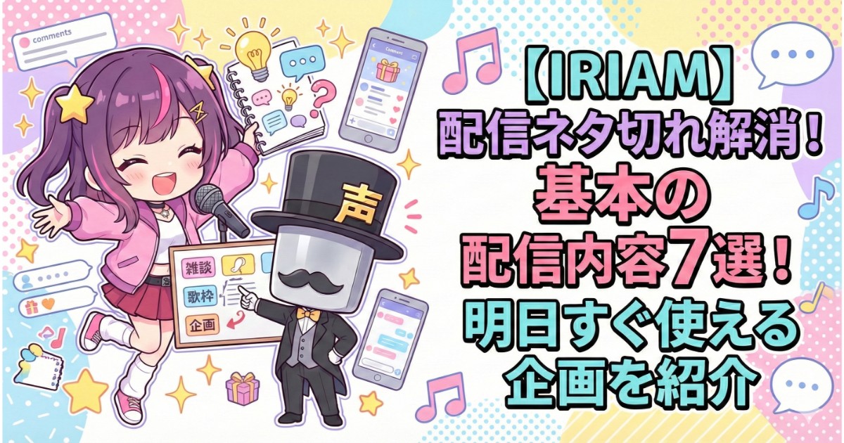 そこで本記事では、初心者でも今すぐ実践できる「IRIAMで鉄板の配信内容7選」に加え、「明日すぐ使えるプチ企画アイデア21選」までを紹介しますので、ぜひ参考にしてみてください。