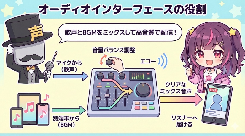 このように、オーディオインターフェースは、単に機材を繋ぐだけでなく、あなたのIRIAM配信の表現の幅を大きく広げてくれる必要不可欠な機材なのです。
