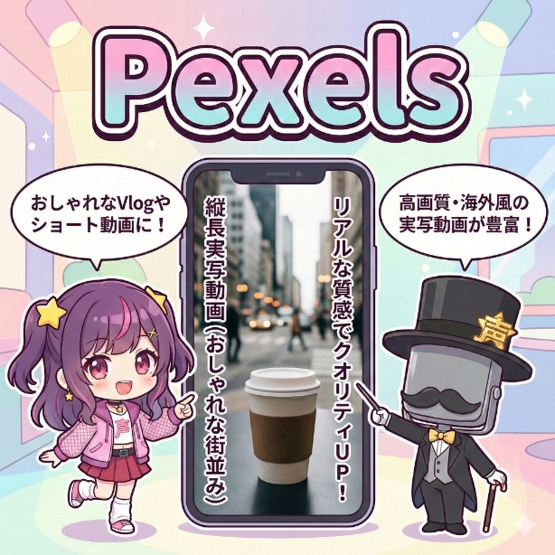 「おしゃれなVlog(日常動画)を作りたい」あるいは「YouTubeショート用の縦長動画素材が欲しい」という場合は、「Pexels」が最適です。