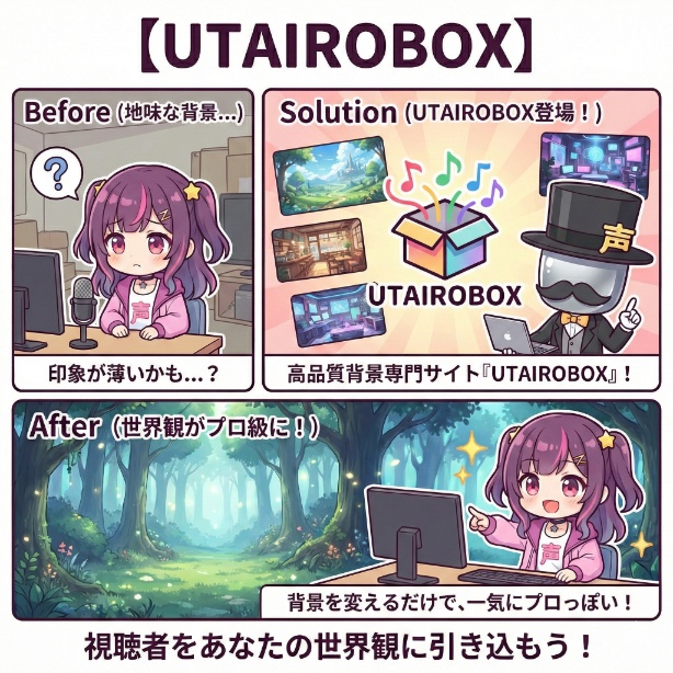 立ち絵と組み合わせるだけで、映像作品のような美しさを手軽に作り出せるため、表現の幅を広げたいVTuberにとって強力なツールとなるでしょう。