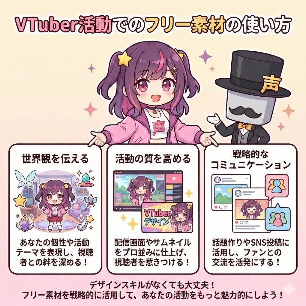 VTuber活動を始めたばかりのあなたがファンを増やし、配信のクオリティを上げるためには、無料で使えるフリー素材を効果的に活用することが何よりも重要です。