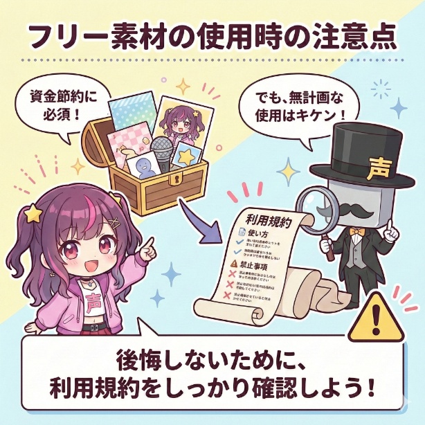このように、フリー素材はあなたのアイデア次第で「配信」「動画」「SNS」という活動の三本柱すべてを強化できる、非常に強力なツールなのです。