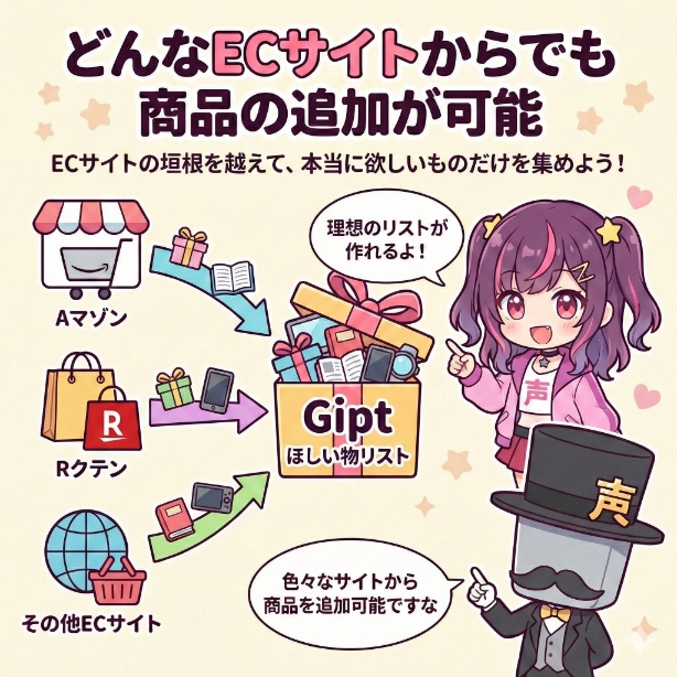 このようにGiptを活用すれば、サイトの制約に縛られることなく、あなたのVtuber活動を本当に豊かにしてくれるアイテムだけを集めた、あなただけの「ほしい物リスト」が完成します。
