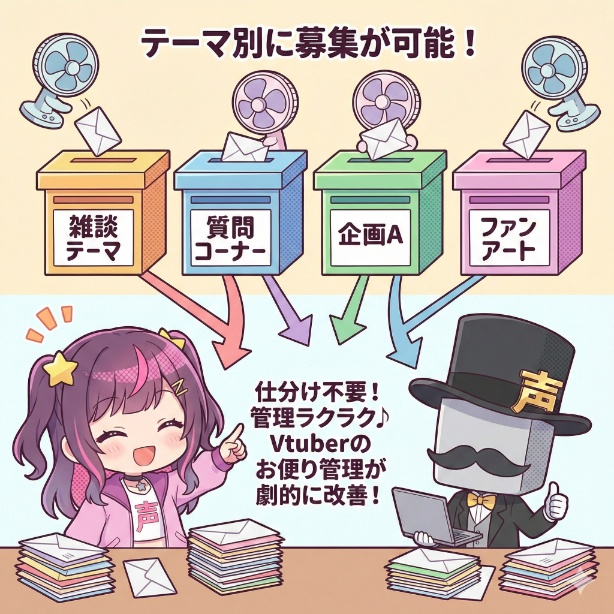 Vtuberとして活動する中で、「企画ごとにお便りを整理して管理したい」と悩んだことはありませんか?