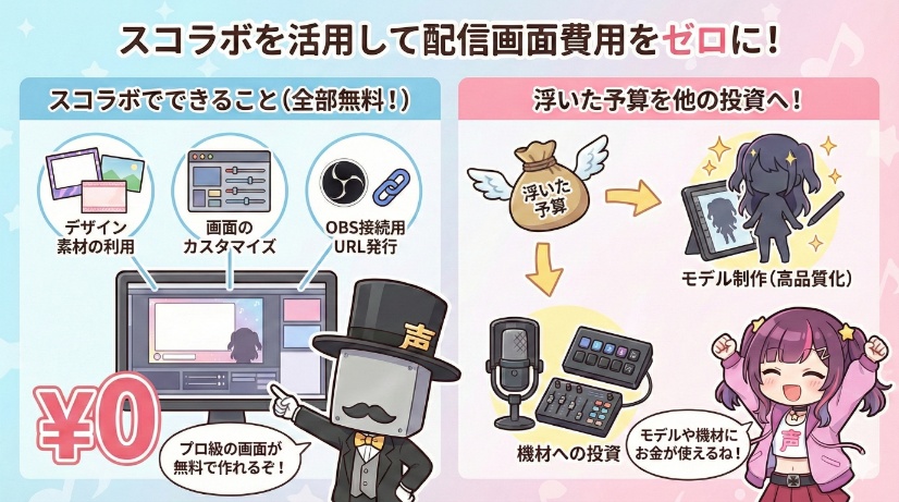 このように、スコラボを活用すれば、配信画面の費用をゼロに抑え、浮いた予算をモデル制作や機材など、他の大切な投資に回すことができるのです。
