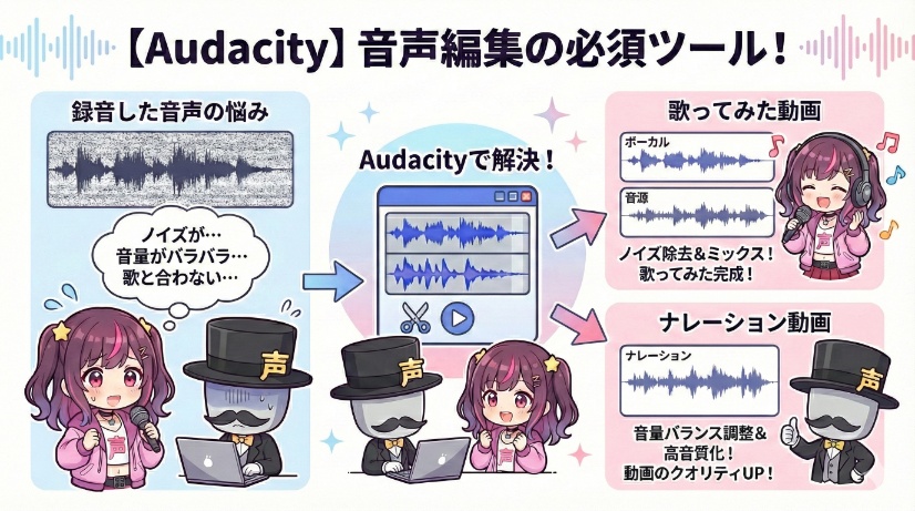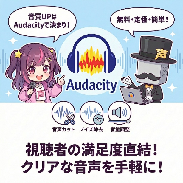 Vtuber活動における「音質」を向上させたいなら、無料の音声編集ソフト『Audacity』が定番かつ最適な選択肢です。