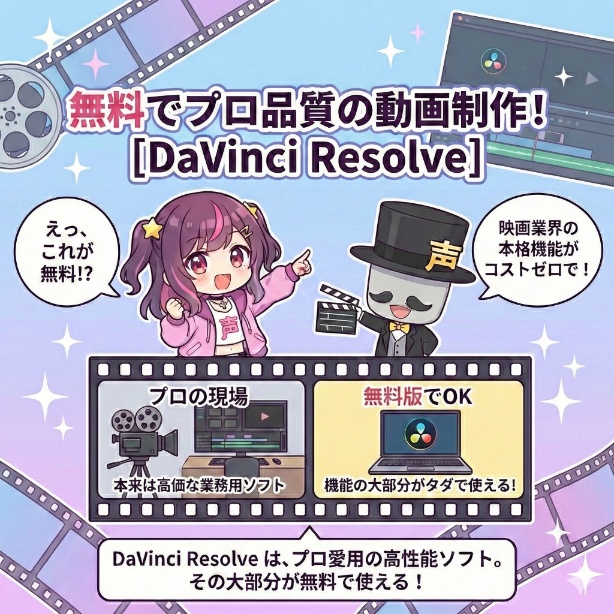 無料でプロ品質の動画を制作したいなら、動画編集ソフトは『DaVinci Resolve』が最適な選択肢です。