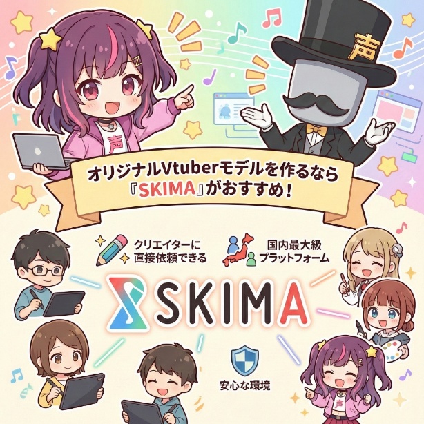自分だけのオリジナルVtuberモデルが欲しいなら、クリエイターに直接依頼できるマーケット『SKIMA』の活用が最もおすすめです。
