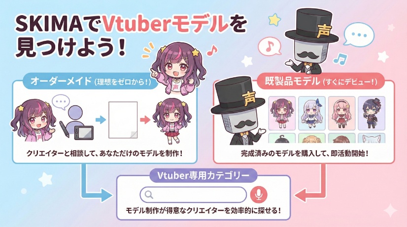 このように、Vtuber活動の第一歩であるモデル準備において、SKIMAは多様な選択肢と出会いの機会を提供してくれる、必須のおすすめツール(サイト)です。