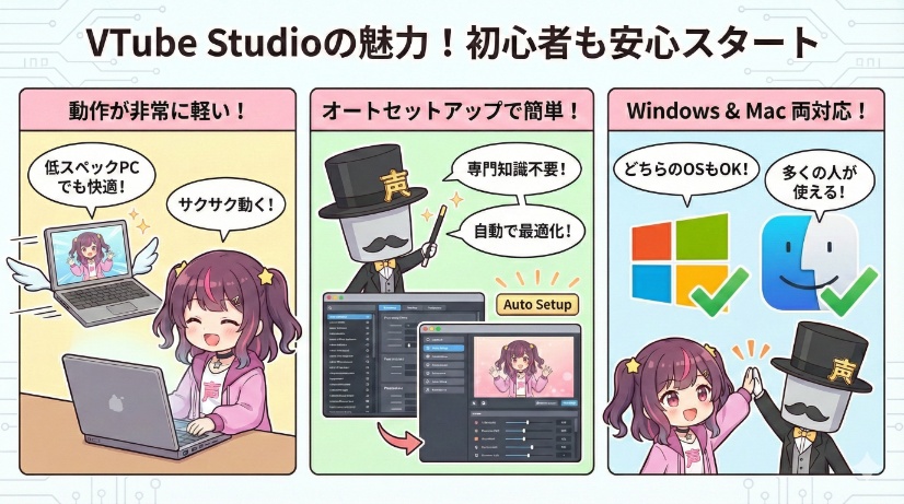 多くのソフトは専門的な知識やハイスペックなPCを要求しますが、VTube Studioはそれらのハードルを大きく下げてくれるでしょう。