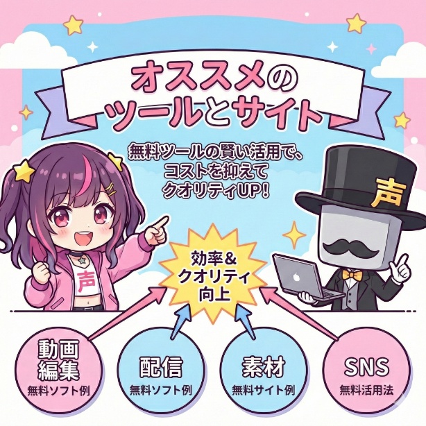 クオリティの高いVtuber活動を費用をかけずに行うなら、無料で使えるツールやサイトの活用が成功への近道です。