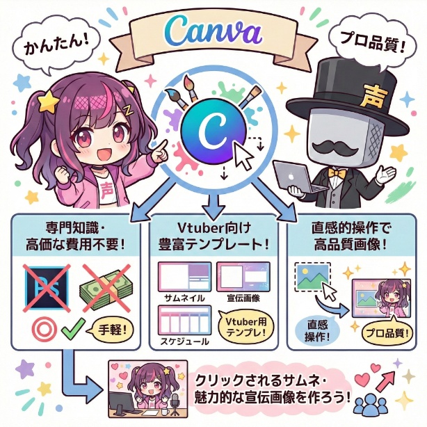 その理由は、汎用的なデザインツールとは異なり、人気Vtuberが実際に使っているような「勝ちパターン」のテンプレートが豊富に用意されているからです。