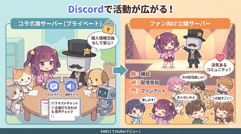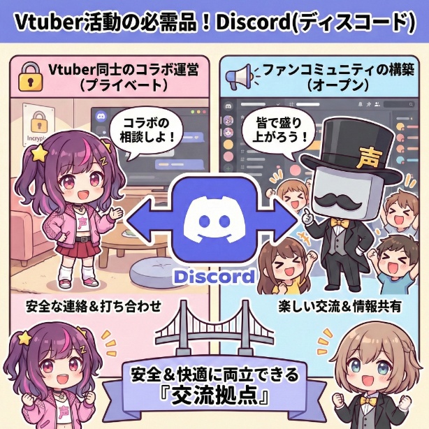 このように、活動の「裏方」としての連絡機能と、「表舞台」としてのコミュニティ機能を兼ね備えたDiscordは、Vtuber活動を円滑に進める上で欠かせないおすすめツールです。