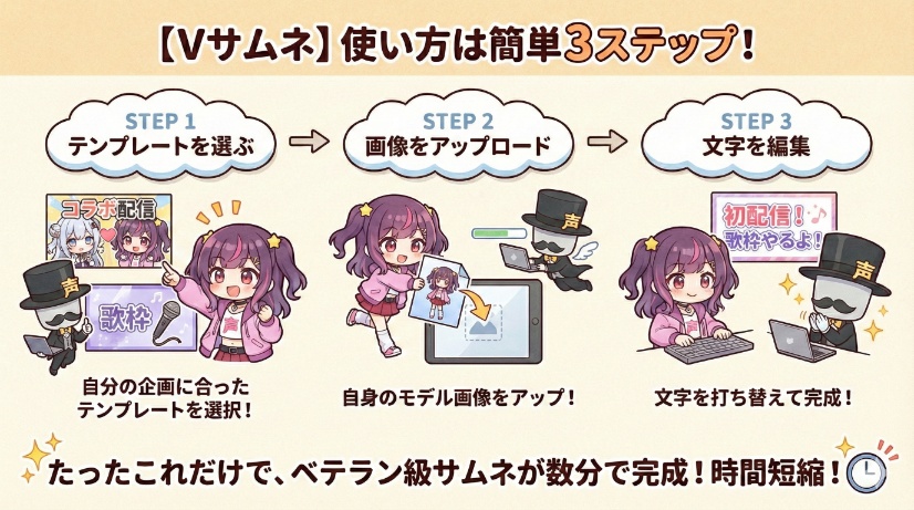 このように、動画や配信の成果を大きく左右する重要な作業を、知識不要で効率化してくれるV-SAMUNEは、全てのVtuberが知っておくべきおすすめツールと言えます。