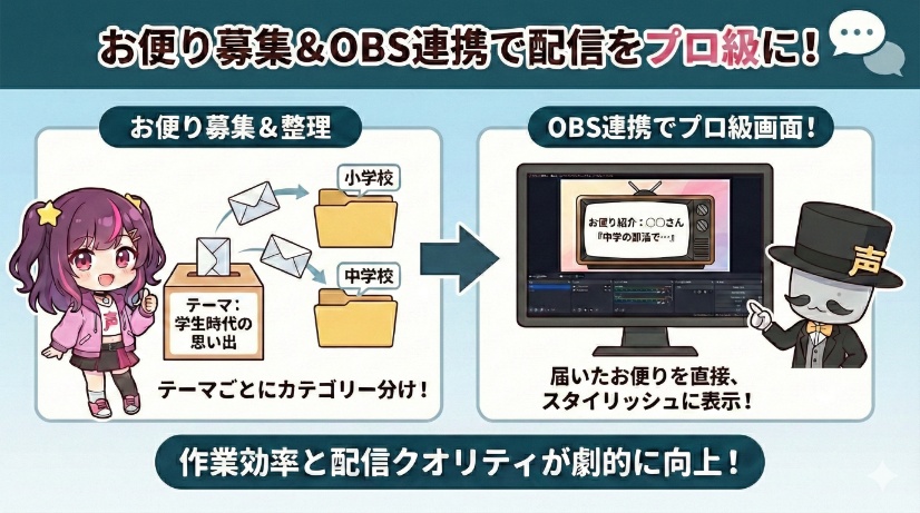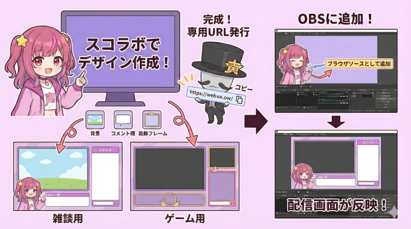 このように、デザインセンスや専門知識がなくても、配信の「見た目」を簡単にプロレベルに引き上げてくれるスコラボは、活動の第一印象を良くするための必須おすすめツールと言えるでしょう。