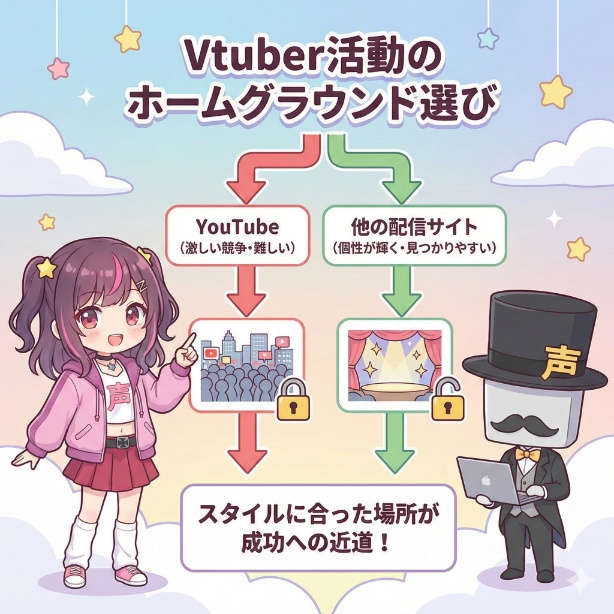 Vtuber活動の「ホームグラウンド」はYouTube一択だと思っていませんか?実は、あなたの配信スタイルによっては、他のプラットフォームを選ぶことが成功への近道になる場合があります。