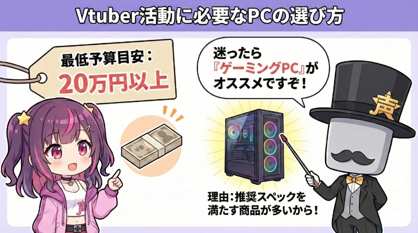 「雑談配信がしたい」「PCゲームを実況したい」といった目的に絞ることで、思ったよりも費用を抑えて活動をスタートできます。