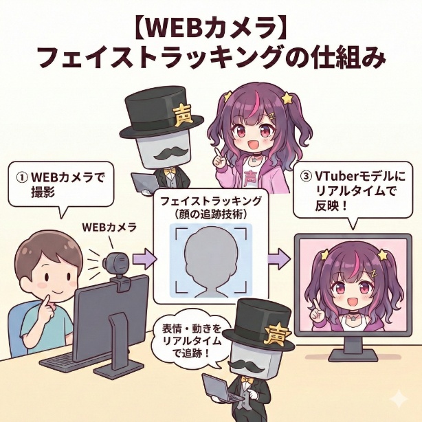 VTuber活動において、webカメラはモデルの動きをリアルタイムで反映する「フェイストラッキング」を行うための重要なデバイスです。