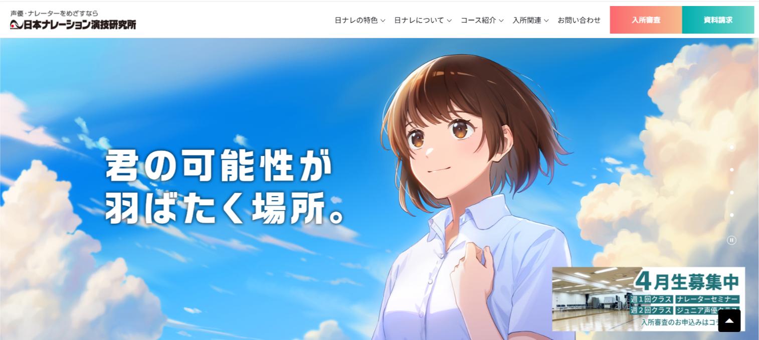 日本ナレーション演技研究所(通称:日ナレ)は、声優やナレーターを目指すための声優養成スクールです。