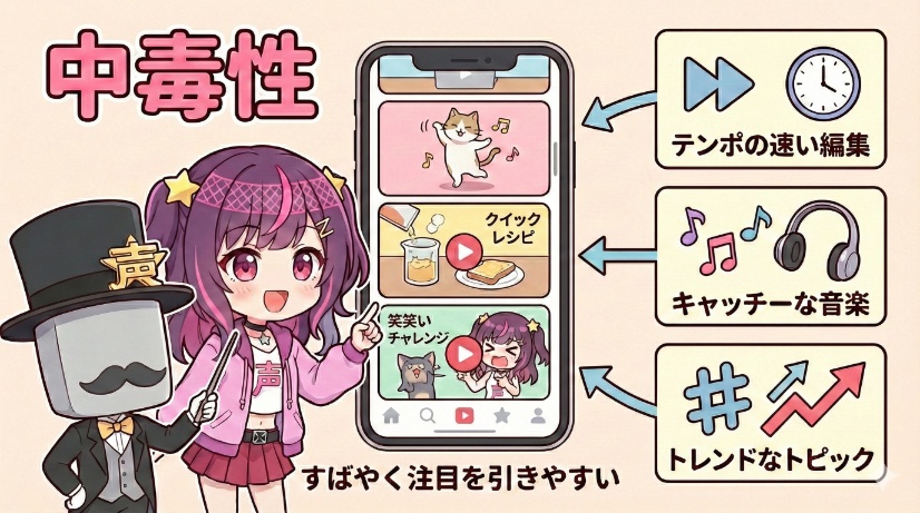ここまでショート動画の機能が普及した理由の1つとして、 “中毒性” の高さがあります。