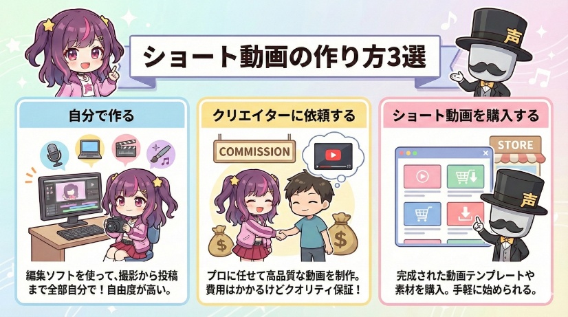 そこで、ここではショート動画を制作するうえで、以下3つの方法について紹介していきます。