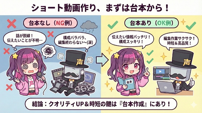 クオリティの高いショート動画を作るには台本作成が重要です。
