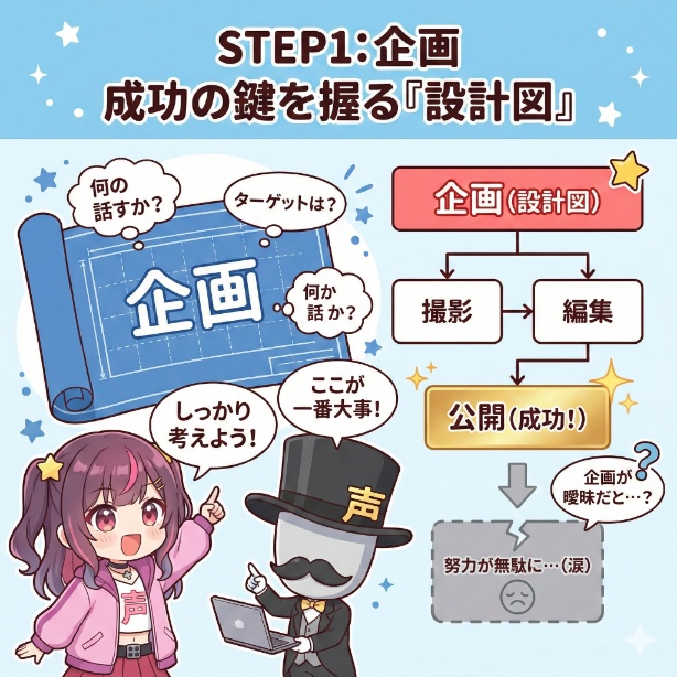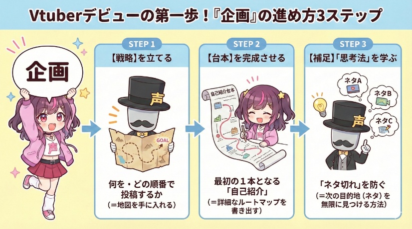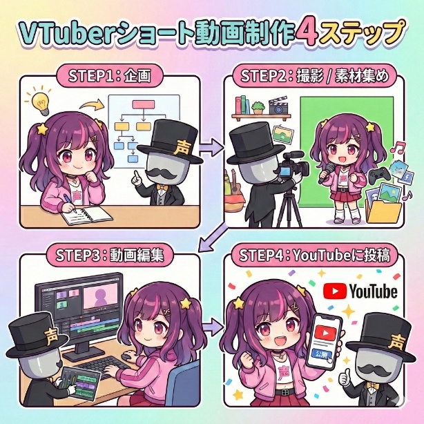 そこで本記事では、未経験からでも迷わず投稿までたどり着けるよう、企画・撮影・編集・投稿までの「4ステップ完全ロードマップ」に加え、初心者でも使える無料ソフトや、Vtuberに特化したネタ10選などを徹底解説します。
